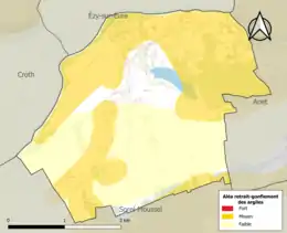 Le retrait-gonflement des sols argileux est susceptible d'engendrer des dommages importants aux bâtiments en cas d’alternance de périodes de sécheresse et de pluie. 53,3 % de la superficie communale est en aléa moyen ou fort (52,8 % au niveau départemental et 48,5 % au niveau national). Sur les 480 bâtiments dénombrés sur la commune en 2019, 277 sont en aléa moyen ou fort, soit 58 %, à comparer aux 70 % au niveau départemental et 54 % au niveau national. Une cartographie de l'exposition du territoire national au retrait gonflement des sols argileux est disponible sur le site du BRGM[20],[Carte 2].