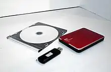 - l'enregistrement des données, qui consiste à écrire des données sur un périphérique, tel qu'un disque dur, une clé USB, des bandes magnétiques, où les informations demeureront même après l'extinction de la machine, contrairement à la mémoire vive.