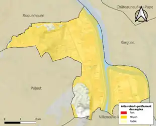 Le retrait-gonflement des sols argileux est susceptible d'engendrer des dommages importants aux bâtiments en cas d’alternance de périodes de sécheresse et de pluie. 88,5 % de la superficie communale est en aléa moyen ou fort (67,5 % au niveau départemental et 48,5 % au niveau national). Sur les 821 bâtiments dénombrés sur la commune en 2019, 817 sont en aléa moyen ou fort, soit 100 %, à comparer aux 90 % au niveau départemental et 54 % au niveau national. Une cartographie de l'exposition du territoire national au retrait gonflement des sols argileux est disponible sur le site du BRGM[23],[Carte 2].