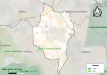 L'occupation des sols de la commune, telle qu'elle ressort de la base de données européenne d’occupation biophysique des sols Corine Land Cover (CLC), est marquée par l'importance des territoires agricoles (79,3 % en 2018), néanmoins en diminution par rapport à 1990 (88,9 %). La répartition détaillée en 2018 est la suivante : cultures permanentes (54,8 %), zones agricoles hétérogènes (20,4 %), zones urbanisées (15,2 %), zones industrielles ou commerciales et réseaux de communication (4,7 %), terres arables (4,1 %), mines, décharges et chantiers (0,8 %), forêts (0,1 %)[15]. L'évolution de l’occupation des sols de la commune et de ses infrastructures peut être observée sur les différentes représentations cartographiques du territoire : la carte de Cassini (XVIIIe siècle), la carte d'état-major (1820-1866) et les cartes ou photos aériennes de l'IGN pour la période actuelle (1950 à aujourd'hui)[Carte 1].