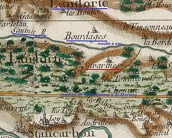 Le hameau est situé au sud du ruisseau Saumès (aujourd'hui appelé Soumès) sur lequel fonctionnait un moulin à eau.