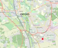 Carte d'Oxford, du XXIe siècle, montrant l'emplacement du prieuré de Littlemore marqué en rouge.
