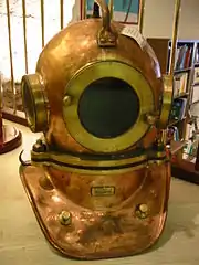 Toutefois quelques modèles de scaphandres à casque ont été autonomes et n'ont donc pas été alimentés en air de surface, comme, entre autres, les scaphandres Rouquayrol-Denayrouze (détendeurs alimentés par une réserve d'air comprimé et fabriqués en France à partir de 1864)[1], ou les scaphandres Dräger (recycleurs alimentés en oxygène et fabriqués en Allemagne à partir de 1912)[2].