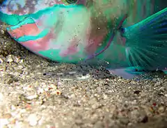 La nuit, les poissons-perroquets se reposent soit à l’abri dans des anfractuosités du récif, sous des roches, dans les épaves ou posés sur le substratum[12] ; la plupart dorment dans un cocon de mucus (voir plus bas).