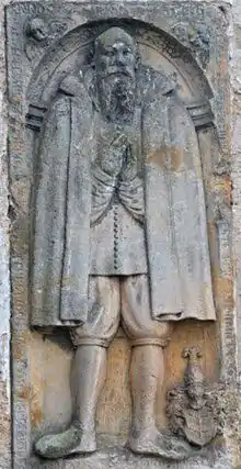 ![]() Ancienne pierre tombale de Dominic Schierer von Waldhaimb zu Falknov, XVe siècle, Bohême. |