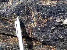- En vieillissant, les gabbros et basaltes issus de la dorsale océanique se sont hydratés pour former des métabasites (métagabbros et métabasaltes), riches en minéraux hydratés tels la chlorite ou l'actinote.
