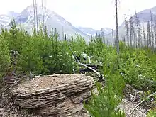 Affleurements de schistes de Burgess vus derrière le lac Émeraude. | |||
