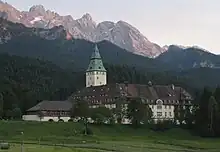 Schloss Elmau est un hôtel de luxe situé au pied des montagnes du Wetterstein dans une réserve naturelle, appartenant à la municipalité de Krün, entre Garmisch-Partenkirchen et Mittenwald en Bavière, Allemagne.