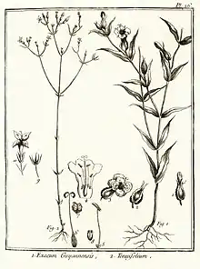 Ces deux centaurelles [avec Curtia tenuifolia] croiſſent dans les ſavanes humides & marécageuſes de l'île de Caïenne & de la terre-ferme. »