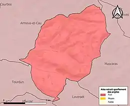 Le retrait-gonflement des sols argileux est susceptible d'engendrer des dommages importants aux bâtiments en cas d’alternance de périodes de sécheresse et de pluie. La totalité de la commune est en aléa moyen ou fort (94,5 % au niveau départemental et 48,5 % au niveau national). Sur les 32 bâtiments dénombrés sur la commune en 2019, 32 sont en aléa moyen ou fort, soit 100 %, à comparer aux 93 % au niveau départemental et 54 % au niveau national. Une cartographie de l'exposition du territoire national au retrait gonflement des sols argileux est disponible sur le site du BRGM[19],[Carte 3].