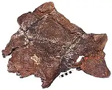 - la présence d'ostéodermes médiaux circulaires proportionnellement grands avec de faibles proéminences centrales et d'ostéodermes latéraux/distaux comprimés en forme de demi-lune sur les demi-anneaux cervicaux (contrairement à Anodontosaurus lambei et Euoplocephalus tutus) ;