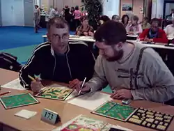 En compétition, le Scrabble classique se pratique exclusivement entre deux joueurs[18] et les appariements des joueurs sont désignés par un ordinateur, qui indique également celui qui commence la partie.