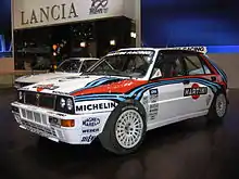 En 1988, la Delta HF Integrale va succéder à la 4WD. Son moteur délivre 20 chevaux de plus mais la différence principale réside en ses ailes élargies qui permettent de monter des jantes et des pneumatiques de plus grandes dimensions pour améliorer la tenue de route et passer plus de puissance au sol. La Delta HF Intégrale est construite à cinq mille exemplaires pour obtenir son homologation, mais rapidement, preuve de l'influence des résultats en course sur la vente de versions routières, une autre série de deux mille cinq cents voitures est produite[131]. Lancia débute toutefois la saison avec la 4WD qui signe un nouveau doublé au Monte-Carlo, Kankkunen, sur une Martini-Lancia officielle devançant Alex Fiorio sur une voiture semi-privée du Jolly Club. Cette victoire, comme la saison précédente, est la première d'une longue série pour Lancia car seul Didier Auriol, passé chez Ford, empêche l'équipe italienne de remporter toutes les épreuves de la saison en gagnant le Tour de Corse. Alén impose à nouveau la 4WD en Suède puis, à l'occasion du troisième rallye de l'année, Biasion permet à la nouvelle Delta HF Integrale de remporter son premier succès pour son premier engagement en devançant Fiorio sur une « vieille » 4WD du Jolly Club. Biasion, en remportant cinq épreuves, décroche son premier titre de champion du monde des pilotes. Il devance ses coéquipiers Markku Alén (deux victoires) et Alex Fiorio. Comme l'année précédente, Lancia inscrit le maximum de points possibles, reléguant Ford à 61 points, et Audi à 69.