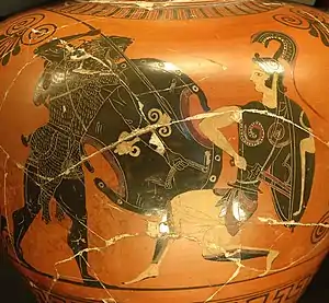 Dans les années 640-630 les Cimmériens menacent la sécurité de la frontière nord-ouest de l'empire assyrien et s'attaquent le royaume de Lydie. Après avoir pillé Sardes, les Cimmériens attaquent les cités grecques d'Ionie et d'Éolide. Ils reconnaissent la suzeraineté d'Assurbanipal avant de se rebeller une nouvelle fois contre les Assyriens. Puis avec la tribu thrace des Trères, les Cimmériens attaquent à nouveau la Lydie en 637 et conquiert Sardes. Les Cimmériens sont finalement battus par les forces conjointes des Scythes du roi Madyes et des Lydiens du roi Alyatte II vers 600[58]. Dans son récit sur la défaite des Cimmériens, Polyen affirme que les Lydiens peuvent compter sur des « chiens de guerre » scythes. Ce terme est lié au rite de passage des kóryos commun chez les peuples indo-européens[59].