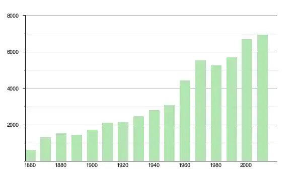 | 1950 | 3 087 | ▲ +10,09 % | |