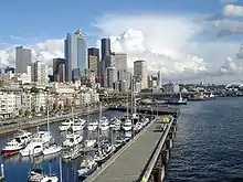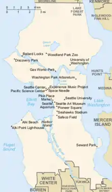 Seattle (en français standard : /si.a.tœl/[2] ; en anglais américain : /si.ˈæ.təl/[3] ) est la plus grande ville de l'État de Washington et du Nord-Ouest des États-Unis. Elle est située entre le Puget Sound et le lac Washington, à environ 155 km au sud de la frontière entre le Canada et les États-Unis. Elle est le siège du comté de King.