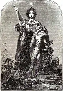 Allégorie du Second Empire légitimant le régime « par la grâce de Dieu et la volonté nationale » (synthèse de droit divin et de démocratie).