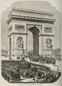 Entrée de Louis-Napoléon Bonaparte à Paris, par l'Arc de triomphe de la barrière de l'Étoile en novembre 1852.