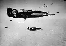 Lorsque l'URSS attaque la Pologne le , conformément au protocole secret du pacte germano-soviétique, elle est, d'un point de vue polonais, dans le même camp que l'Allemagne, sans pour autant être en état de guerre déclarée avec la France et le Royaume-Uni[34]. Lorsque l'URSS attaque la Finlande en , la Finlande se trouve plutôt du côté de la France et du Royaume-Uni. Cette agression vaut par ailleurs à l'URSS de se voir expulsée de la SDN fin 1939. Pendant la durée du pacte, Staline livre ponctuellement et à crédit du pétrole, des matières premières et des céréales permettant au Reich de contourner partiellement le blocus des Alliés. Il lui livre aussi plusieurs dizaines de communistes allemands réfugiés en URSS.