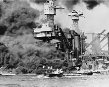 Le , le souhait du Troisième Reich se réalise à la surprise générale : les Japonais attaquent Pearl Harbor. Cette attaque surprend les dirigeants allemands et nombreux s'en réjouissent. Hitler avait l'occasion de déclarer la guerre aux États-Unis en ayant le soutien du Japon et il prit sa décision très rapidement[28]. Mais Hitler aurait pu ne pas attaquer les États-Unis, puisque le nouvel accord n'était pas encore signé lorsque Pearl Harbor fut annoncé. Rien ne l'obligeait à le faire et il aurait pu simplement laisser le Japon détourner l'attention des États-Unis dans le Pacifique[29]. Il aurait aussi pu se concentrer sur le front de l'Est, mais déclare la guerre pour obliger les États-Unis à se battre sur deux fronts et donc à ne pas pouvoir utiliser leur pleine puissance militaire contre l'Allemagne ou le Japon, car il pensait que leur puissance militaire maximale serait atteinte en 1942 et il fallait donc les vaincre avant[30].