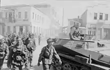Le , la bataille de France démarre par l'invasion par les Allemands du Luxembourg, de la Belgique et des Pays-Bas, jusqu'alors tous neutres. Les autorités du Luxembourg, lequel ne possède pas de véritable armée[19], opposent une protestation de pure forme à leurs envahisseurs[20], qui s'emparent du pays dans la journée.