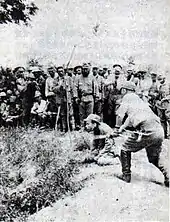 Les Japonais reçoivent l'ordre d'exécuter les soldats chinois restés en ville[10]. La convention de Genève protégeant les prisonniers de guerre n'est pas appliquée étant donné que pour le commandant japonais, le conflit est un « incident » et non une guerre[10]. Des milliers de prisonniers chinois sont exécutés par des mitrailleuses, leurs cadavres sont jetés dans l'Yang-Tsé-Kiang, d'autres sont brûlés à l'essence[11]. Certains soldats sont décapités ou transpercés à la baïonnette[11]. Certains soldats chinois trouvent refuge dans la zone de sécurité, mais sont traqués[11]. Les Japonais arrêtent tous les hommes en âge de combattre et les exécutent sommairement[11]. Au total, on estime que très peu de prisonniers chinois ont réussi à échapper au massacre[11]. Le nombre de morts peut être évalué entre 60 000 et 80 000 hommes[11].