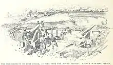 Le , les canonnières de Porter ouvrent le feu sur la façade maritime du fort et à midi, elles parviennent à réduire au silence tous les canons sauf quatre[16]. Au cours de ce bombardement, Hoke envoie environ 1 000 hommes de sa ligne vers les fort Fisher, cependant, seulement 400 hommes environ sont en mesure de débarquer et de passer les défenses, tandis que les autres sont contraints de rebrousser chemin. À ce moment, les marins et les marines, emmenés par le capitaine de corvette Kidder Breese, débarquent et se dirigent vers le point où les façades terrestre et maritime du fort se rencontrent, une caractéristique connue comme le bastion du nord-est. Le plan initial de l'armée de l'Union est, pour la force navale, armée de revolvers et de sabres d'abordage, d'attaquer en trois vagues pendant que les marines fournissent un tir de protection, mais au lieu de cela, l'assaut se déroule en une seule masse inorganisée. Le général Whiting mène personnellement la défense et met en déroute l'assaut, avec de lourdes pertes pour la force navale[17].