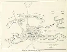 Lorsqu'il a été informé de cette opportunité, Wellesley leur a dit de "laisser les hommes traverser". [9] Immédiatement, une barge, composée d'un officier subalterne et de 24 hommes traversa le fleuve et occupa un séminaire fortifié surplombant le site de débarquement, suivi rapidement par le reste de leur compagnie puis la compagnie légère du même bataillon. Au moment où les Français se rendirent compte que les forces de Wellesley étaient sur la rive nord, les alliés fortifiaient leur position, le reste du bataillon des alliés de la brigade Hill avait traversé plus de barges.[10]