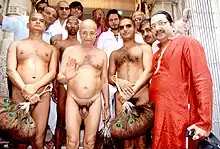 Le jaïnisme est la religion qui se fonde les Tirthankaras, une série de vingt-quatre éveillés ayant atteint la libération (moksha). Le dernier de ces « passeurs de gué » (sens de leur dénomination) a vécu au VIe siècle av. J.-C., et il est connu sous l'appellation de Mahâvira (« grand héros ») ou de Jina (« vainqueur »)[1]. C'est pourquoi la religion qu'il a fondée a pris le nom de « jaïnisme ». Une des caractéristiques de la vie d'ascèse que choisit Mahâvira fut l'abandon de tout vêtement, pour être simplement « vêtu d'espace »[2].