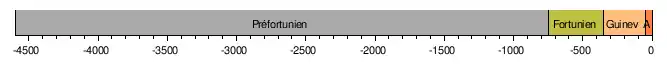 (en) Lunar and Planetary Institute XXVII (1996) A. T. Basilevsy et J. W. Head, « Regional and global stratigraphy of Venus: a preliminary assessment and implications for the geologic history of Venus, » conduisant à une représentation du type (dates en millions d'années ; « Guinev » signifie « Guinevérien » et « A » signifie « Aurélien ») :