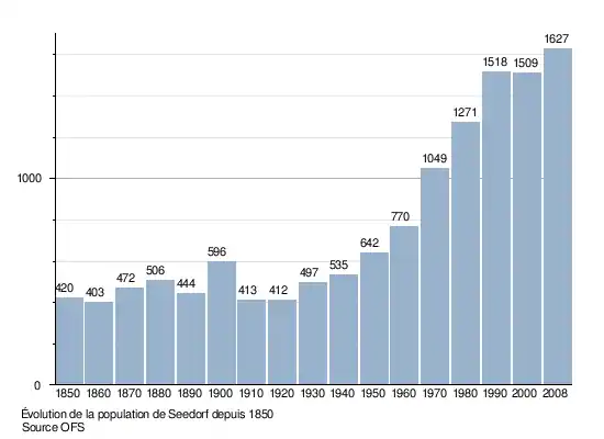Le graphique suivant résume l'évolution de la population de Seedorf entre 1850 et 2008[3] :