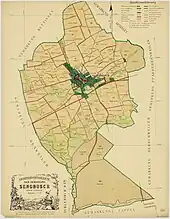 L'occupation des sols de la commune, telle qu'elle ressort de la base de données européenne d’occupation biophysique des sols Corine Land Cover (CLC), est marquée par l'importance des territoires agricoles (52,1 % en 2018), néanmoins en diminution par rapport à 1990 (59,4 %). La répartition détaillée en 2018 est la suivante : forêts (27,7 %), terres arables (25,5 %), prairies (23,9 %), zones urbanisées (13,9 %), zones industrielles ou commerciales et réseaux de communication (6,2 %), zones agricoles hétérogènes (2,7 %)[15]. L'évolution de l’occupation des sols de la commune et de ses infrastructures peut être observée sur les différentes représentations cartographiques du territoire : la carte de Cassini (XVIIIe siècle), la carte d'état-major (1820-1866) et les cartes ou photos aériennes de l'IGN pour la période actuelle (1950 à aujourd'hui)[Carte 3].