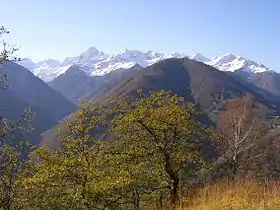 La vallée de l'Esbintz mène à l'ouest vers le col de la Core qui assure la communication avec la vallée voisine de Bethmale. C'est le plus gros village du Haut-Salat.