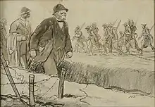 Correspondant de guerre pour Le Journal, ses écrits rassemblés dans Un pékin sur le front, auront la naïveté de ton du héros de Stendhal à Waterloo, et l’émotion sincère qui surprendra une société qui envoie ses hommes au champ de bataille, comme au dernier spectacle à la mode. Les illustrations qui accompagnent ces textes reviennent à un dessin classique, traité au fusain et crayon rehaussé d’aquarelle. Sem ne verra du front que ce que la Grande Muette veut lui laisser voir ; cependant, le spectacle des hommes et des bêtes malmenées l’émeut. On pourra lui reprocher son manque de vigueur à dénoncer les conditions de vie des tranchées, quand des artistes engagés dans la guerre critiquent violemment la boucherie de 1914-18. Mais le crayon de Sem se met au service d’une émotion sincère palpable encore aujourd’hui. En 1918, il donnera 68 croquis d’audience du procès Bolo-Pacha.