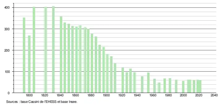 Après un creux au milieu des années 1960, la population remonte lentement et se stabilise au début du XXIe siècle.