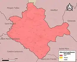Par ailleurs la commune fait partie de l'aire d'attraction d'Agen, dont elle est une commune de la couronne[Note 2]. Cette aire, qui regroupe 81 communes, est catégorisée dans les aires de 50 000 à moins de 200 000 habitants[I 2],[I 3].