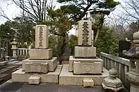 Décédé en 1902, sa tombe se trouve au cimetière Aoyama à Tokyo.