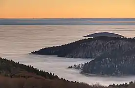 Information : le ballon d'Alsace est un point culminant qui se situe entre les départements des Vosges, de la Haute-Saône, du Territoire de Belfort et du Haut-Rhin et bénéficie d'un large panorama.