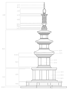 Seokgatap date de la période du Silla unifié et a été construite au bord de la capitale de ce royaume dans un temple bouddhiste. Haute de 8,2 mètres, Seokgatap se distingue par sa simplicité, l'équilibre de ses proportions et la grâce de ses éléments décoratifs. Sa simplicité est renforcée par l’absence de gravures et de sculptures sur ses façades. De forme carrée, elle repose sur une plate-forme de deux étages et s'élève sur trois niveaux dont les dimensions suivent un rapport 4:3:2 et dont le bord est légèrement relevé[2]. Elle est surmontée d’un fleuron superposant notamment de manière classique le bol de rosée, une série d’anneaux, la flamme d’eau, le véhicule du dragon et le joyau sous la forme d’une perle. À sa base, elle est entourée par huit dalles rondes au décor de lotus qui marquent les huit principaux points cardinaux[3]. La construction de la pagode est faite par un assemblage de grandes pierres taillées ; celle formant le deuxième étage a par exemple un poids de six tonnes[4]. Elle est essentiellement construite à partir de granite provenant de Namsan, la montagne d’en face, à l’exception du fleuron et d’une partie des fondations composés de granite local[3]. Cette différence de matériau est due au fait que le fleuron d’origine a disparu avant le XVIe siècle et qu’il a été recréé en 1973 en prenant celui de la pagode de Silsangsa (en) comme modèle[5].
