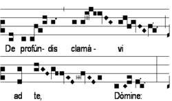 ♦ Le graduel Qui sedes, répertorié sous le septième mode, est très perturbé (que ce soit sur le plan mélodique ou modal). Dans le graduel vatican, des passages entiers sont effondrés d'une quinte par rapport à la version qu'en donne le graduel Dominicain.