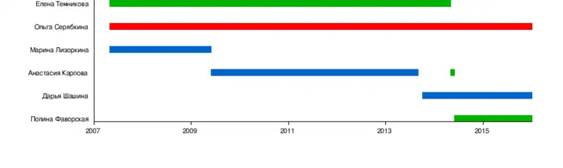 Polina Favorskaya (Полина Фаворская), née le à Volgograd. Elle a pris la place d'Elena Temnikova après son départ.