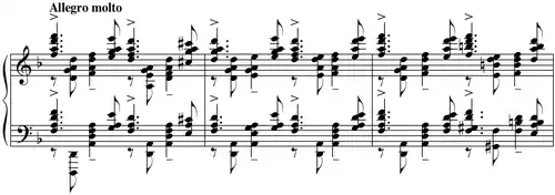 On retiendra de Rachmaninov, également, son usage d'accords très espacés : son Deuxième concerto pour piano, son Étude-tableau en mi bémol majeur et surtout son Prélude en si mineur.