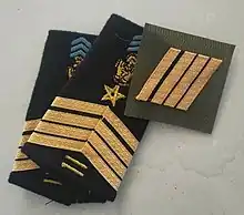 - sergeant-major (insigne : trois chevrons, trois arcs et une étoile au centre),