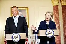 Sergueï Lavrov avec Hillary Clinton (Washington, 7 mai 2009).