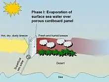 Le Sahara Forest Projet[7],[8],[9] est un programme qui vise à fournir de l'eau potable, de la nourriture et de l'énergie renouvelable dans les régions chaudes et sèches ainsi que la revégétalisation des zones désertiques inhabitées. Cette proposition combine la technologie de la serre d'eau de mer avec des miroirs solaires (CSP, une forme d'énergie renouvelable produisant de l'électricité du soleil en utilisant l'énergie thermique nécessaire pour faire fonctionner une turbine à vapeur conventionnelle).
