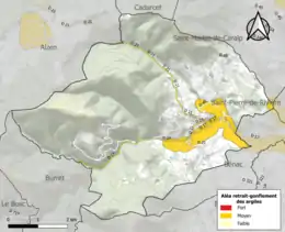 Les mouvements de terrains susceptibles de se produire sur la commune sont soit des chutes de blocs, soit des glissements de terrains, soit des mouvements liés au retrait-gonflement des argiles. Près de 50 % de la superficie du département est concernée par l'aléa retrait-gonflement des argiles, dont la commune de Serres-sur-Arget[37]. L'inventaire national des cavités souterraines permet par ailleurs de localiser celles situées sur la commune[38].