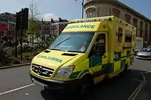 - Le Royaume-Uni possède un service d'ambulances publiques très sophistiqué et para-militarisé en uniforme qui dépend du National Health Service (NHS)[35]. Service Public qui assure à la fois les interventions d'urgence et les transports ambulanciers non urgents. Ce service national a défini depuis peu tous les paramédicaux qui dépendent de lui depuis les assistants de régulation médicale jusqu'aux paramedics diplômés (paramédicaux du niveau infirmier DE). Il n'y a pas de régulation médicale, mais des mobile intensive care units terrestres et héliportées ont commencé à fonctionner à Londres et Glasgow. Les médecins de ces UMH MICU s'autorégulent avec leur base hospitalière et médicalisent les ambulances du NHS avec le système du rendez-vous MICU/ambulance. Une caractéristique de l'organisation anglaise est que les pompiers s'occupent exclusivement du sauvetage et du feu et ce qui évite les conflits inter-organisationnels comme en France, dans les pays lusophones ou au Japon. Les îles Anglo-Normandes et de Man ont un système propre.