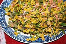 Plat vietnamien avec des fleurs de Sesbania bispinosa.