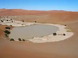 Située dans le désert du Namib, la Sesriem ne transporte de l'eau que lors des rares épisodes où la pluie tombe sur les monts Naukluft et s'en écoule. À cause de la sécheresse et de la dureté du sol, cette eau de pluie ne peut pas s'infiltrer et le lit de la rivière Sesriem est alors parcouru par de violentes crues pendant quelques heures.