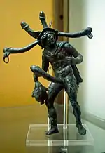 Le pénis énorme de l'Art romain est associé au dieu Priape, entre autres. Il est provocant, là pour provoquer l'hilarité ou pour des fins magiques[118]. Originaire de la ville grecque de Lampsaque, Priape est une divinité de la fertilité dont les statues sont placées dans les jardins pour repousser les voleurs. Le recueil de poésie intitulé Priapea (en) parle de la sexualité phallique, et contient des poèmes dont le narrateur est Priape. Dans un poème, par exemple, Priape parle du viol anal envers un voleur. La colère de Priape peut causer l'impuissance ou un état d'excitation perpétuelle inassouvissable[Williams 2].